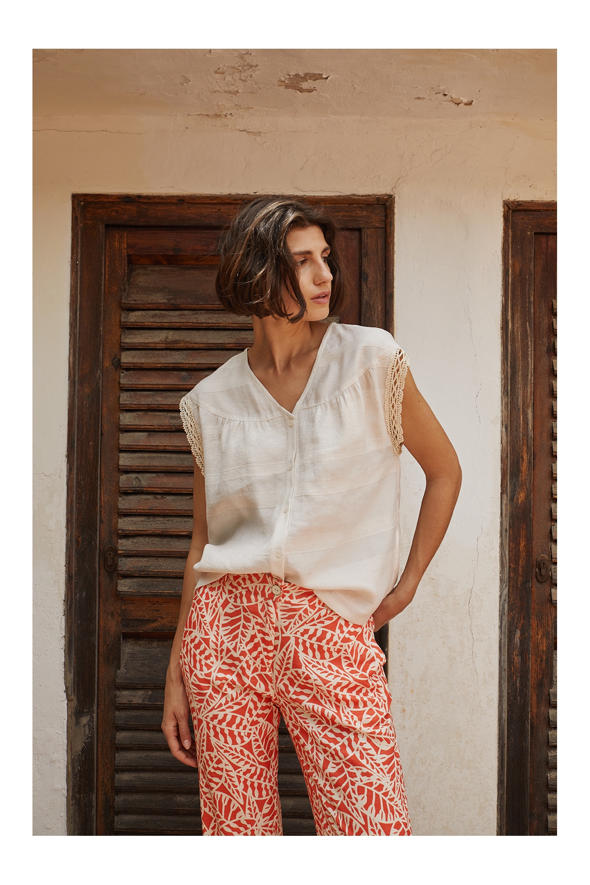 Ideal para hacer un total look con la blusa de la misma colección o para combinarlo con cualquier otra blusa o camiseta