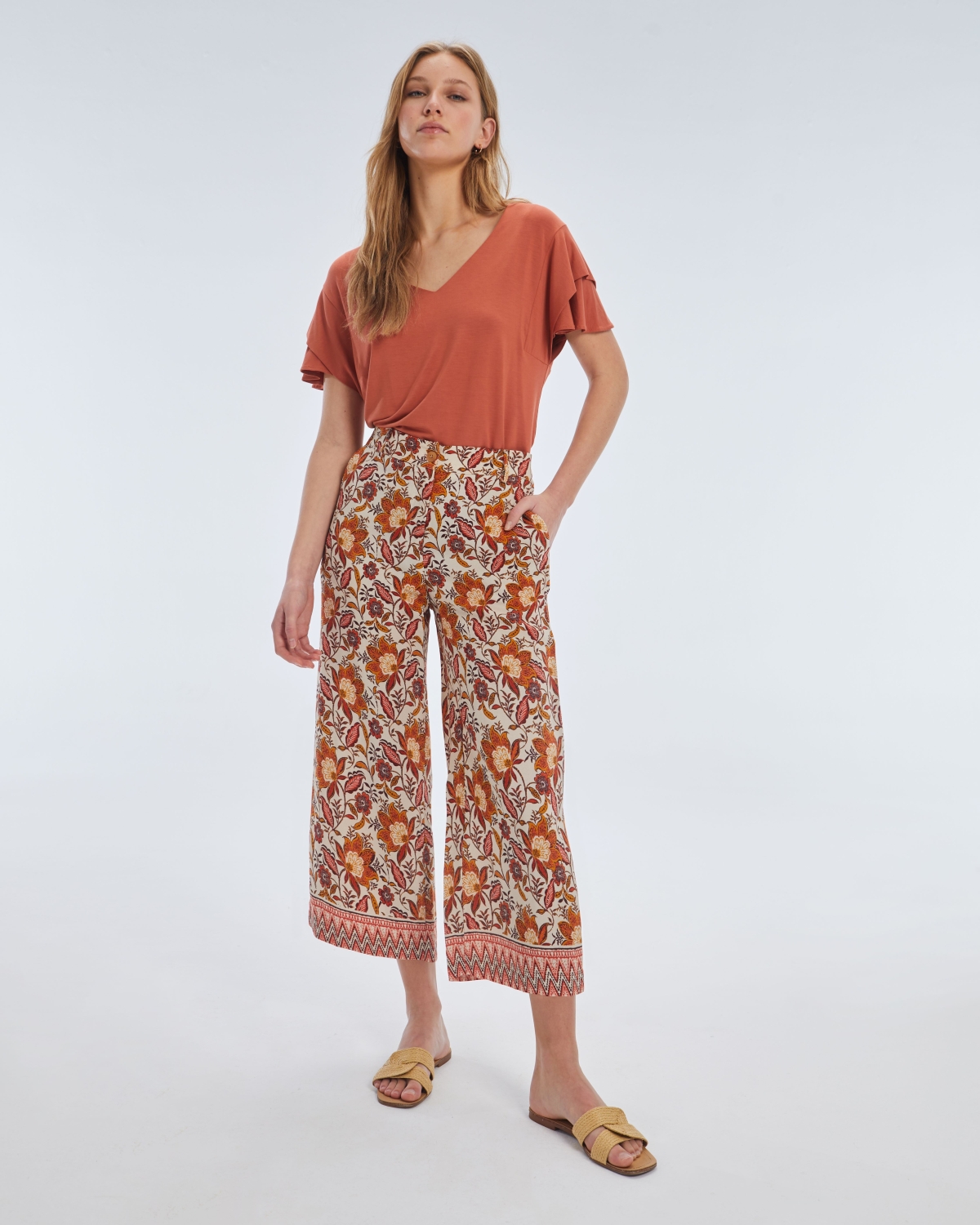 Pantalón estampado de Paz Torras. Ancho y tobillero, es unpantalón muy fresco y cómodo.