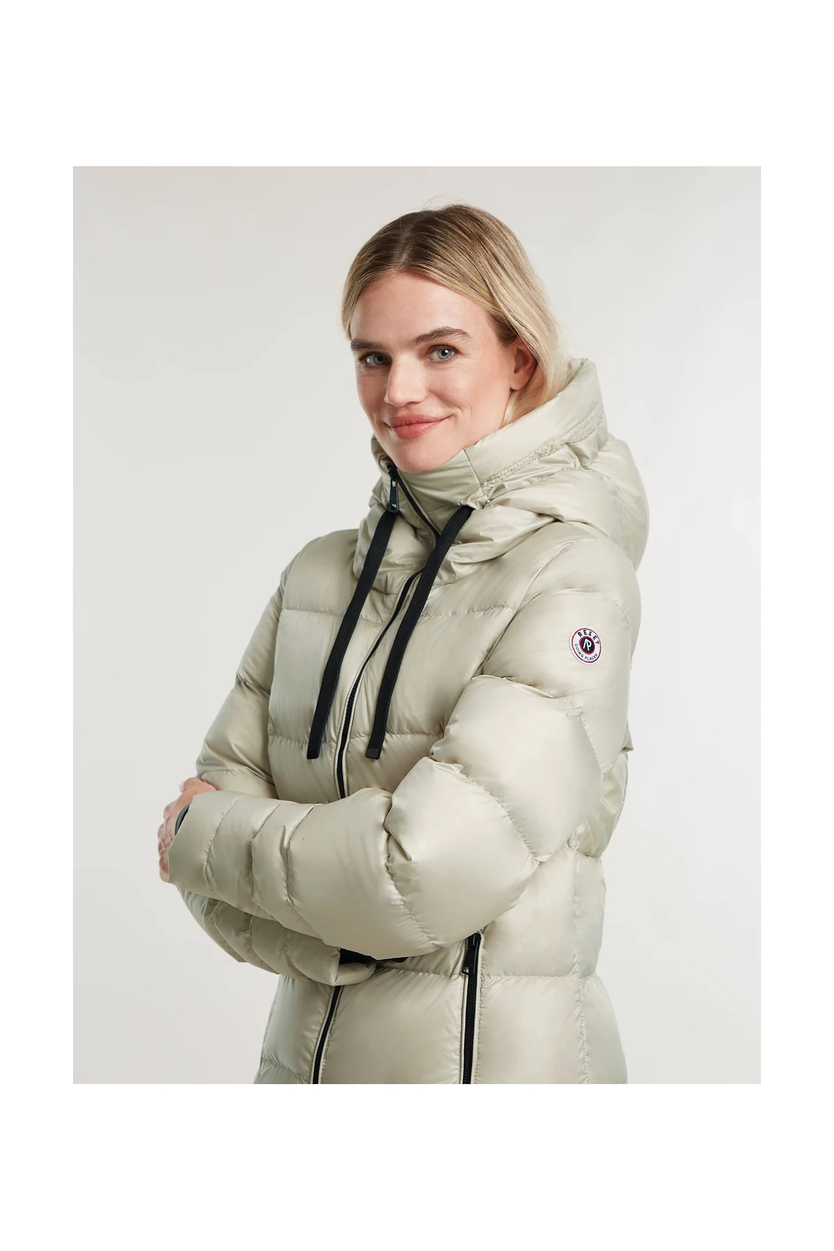 Parka larga de mujer de plumas de Reset. Con capucha, es una parka ultralijera super amorosa y confortable.