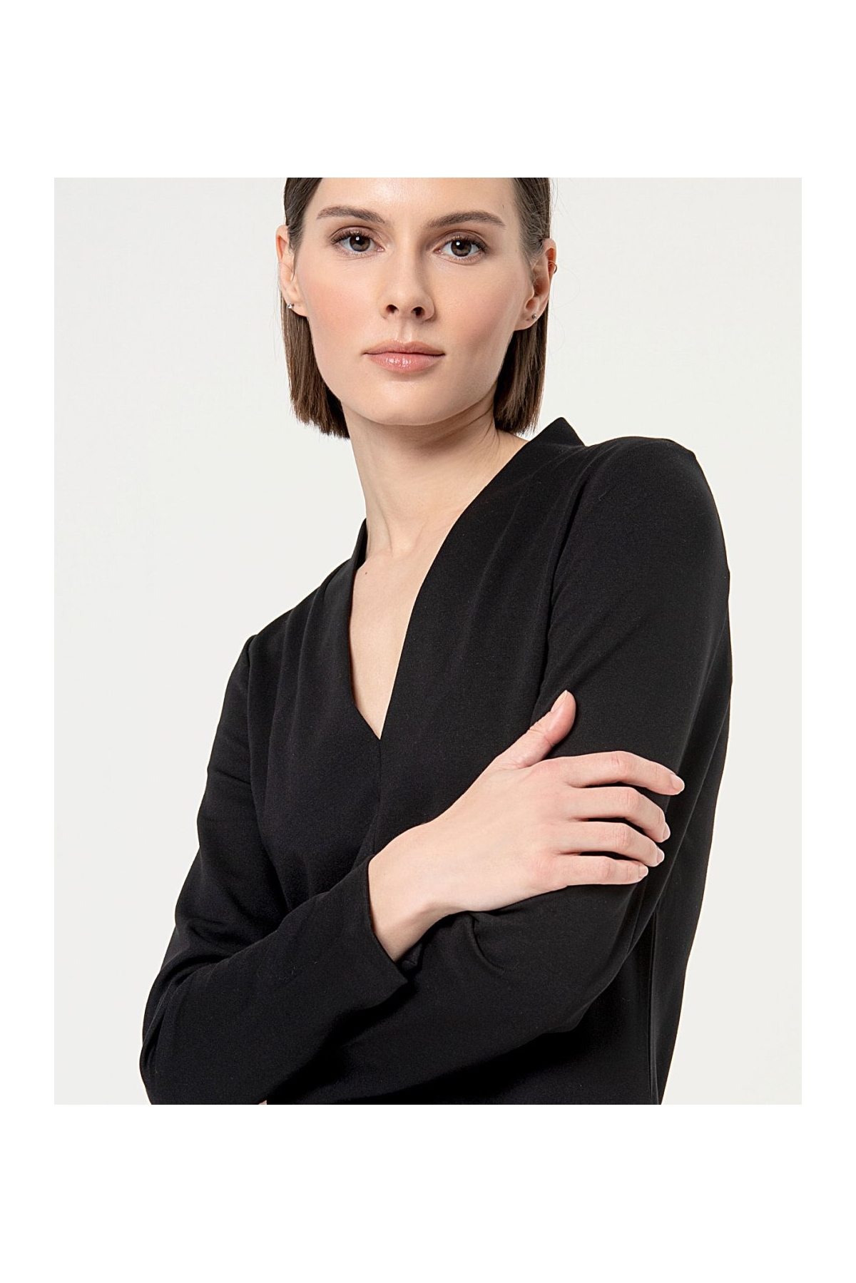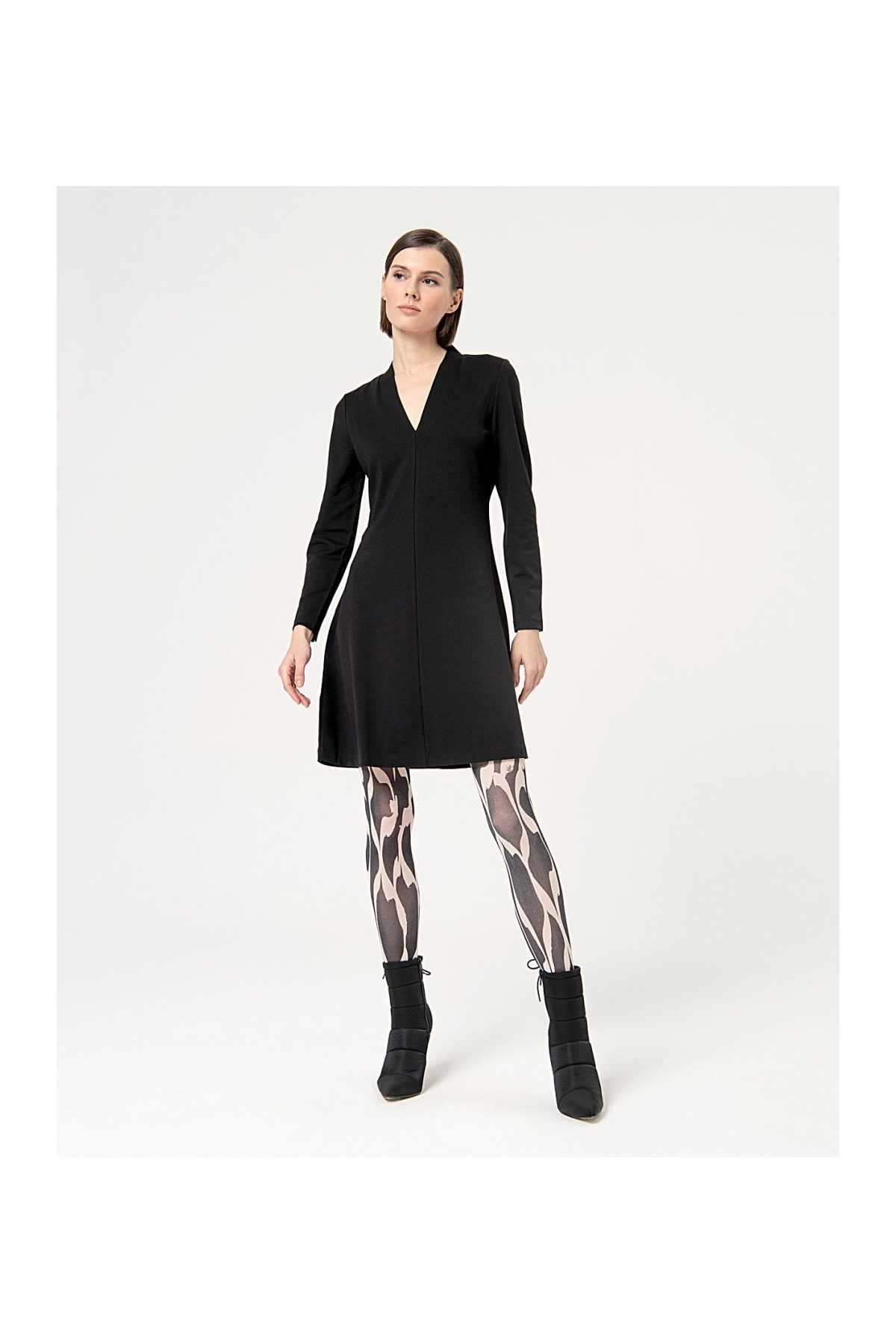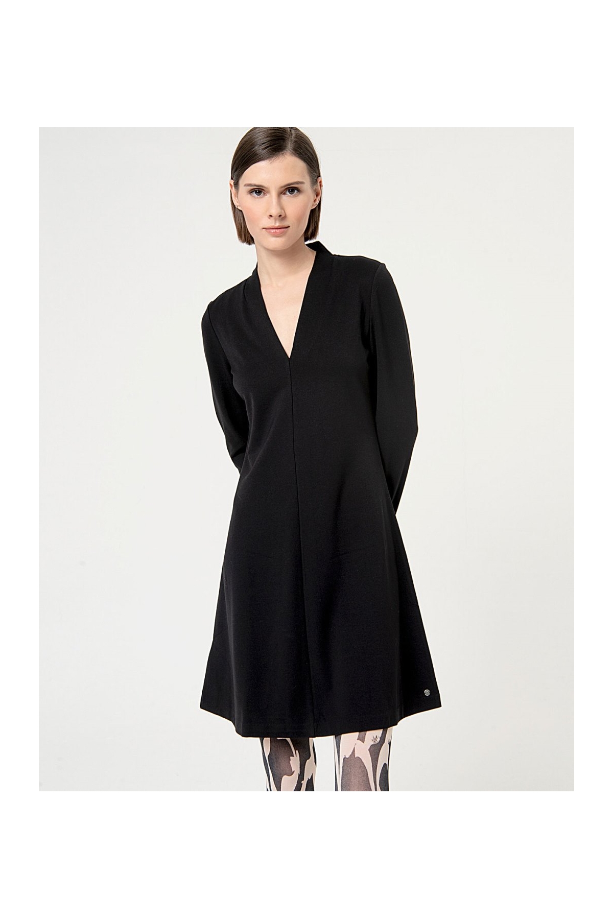 VESTIDO LISO NEGRO DE PICO MANGA LARGA SURKANA. Escote en uve, es muy favorecedor