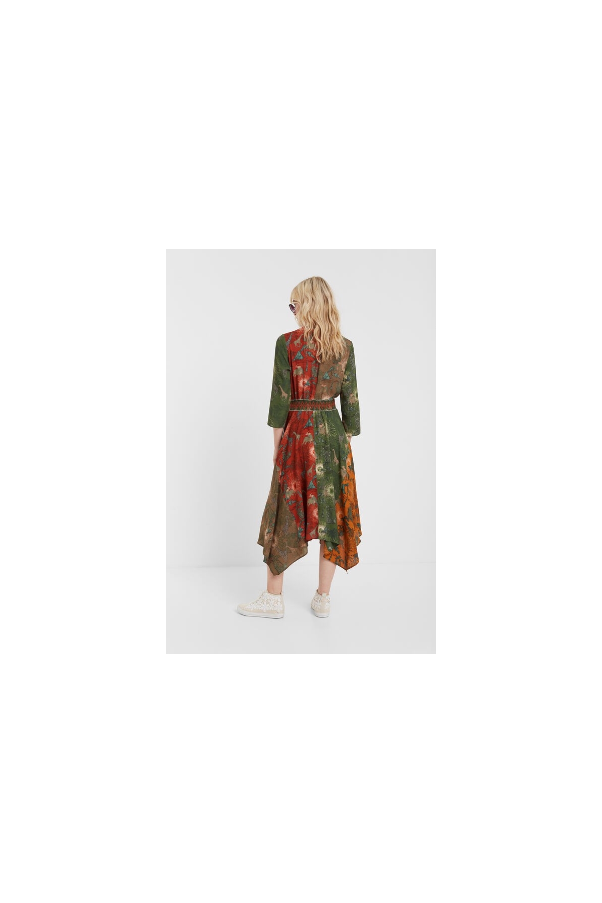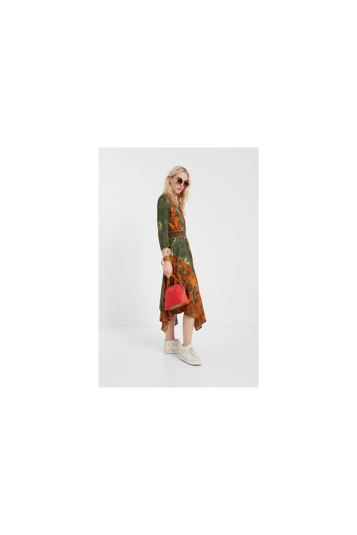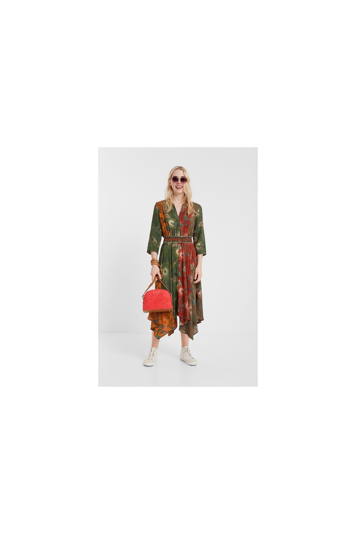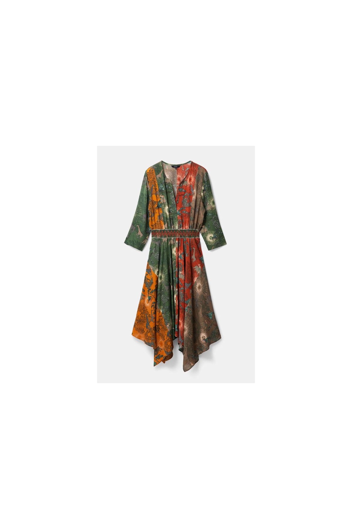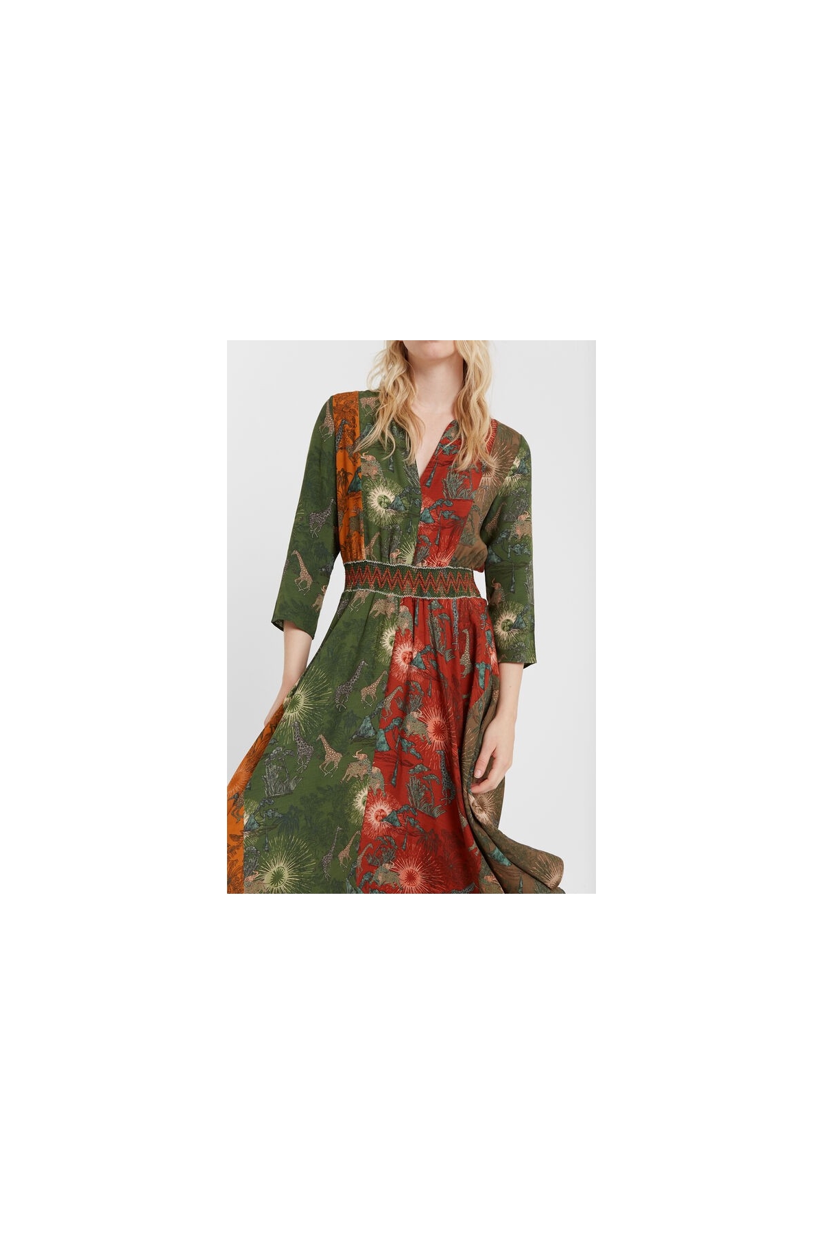 DesigualVestido estampado OHIO de DESIGUAL. Midi de picos, corte en la cintura con goma. Manga francesa, escote en uve